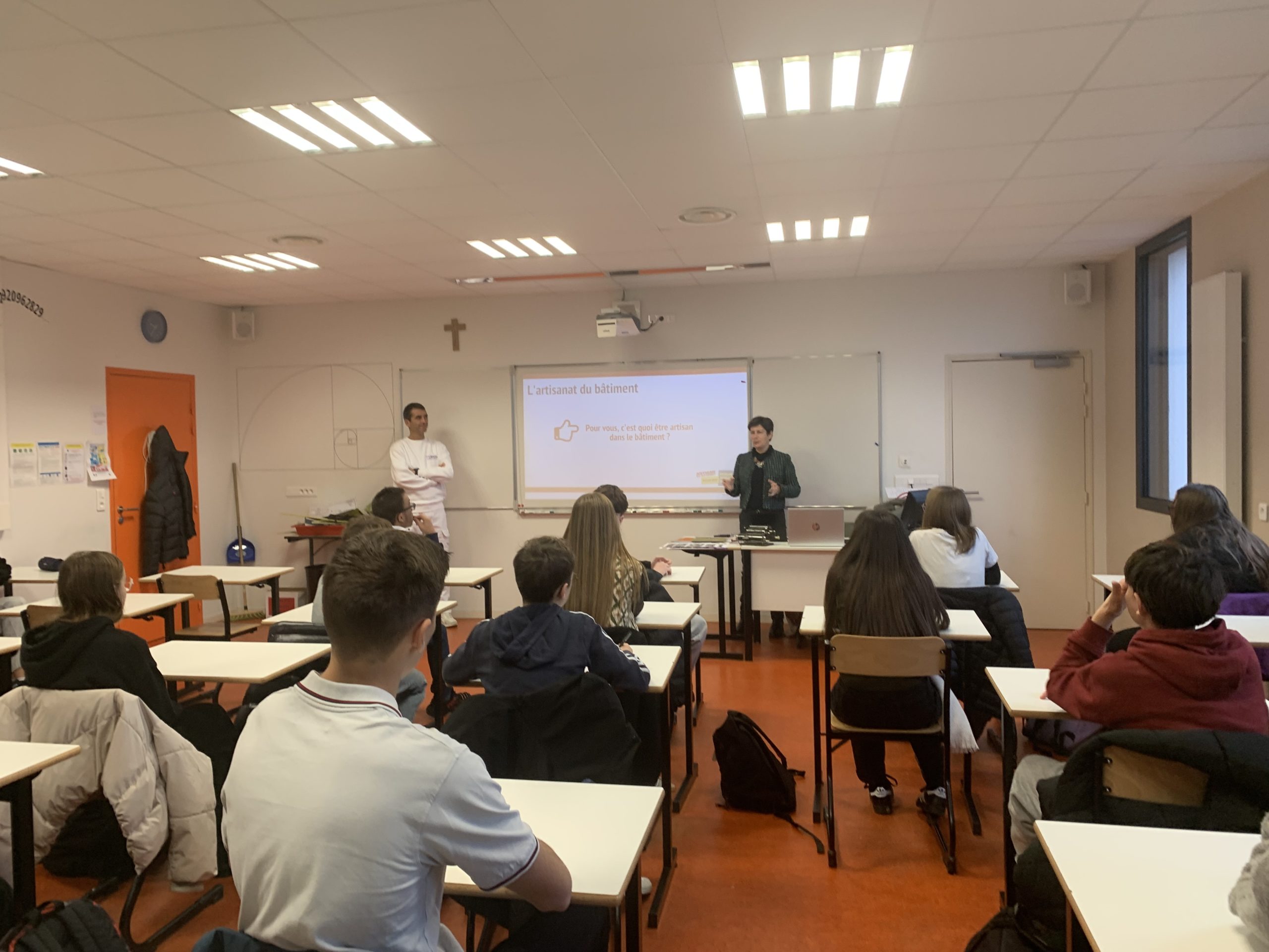 Ce jeudi 27 novembre, les élèves du Collège Jeanne d’Arc de Maen Roch (Saint Brice en Coglès) découvraient différents métiers, avec la venue de professionnels du bâtiment.
