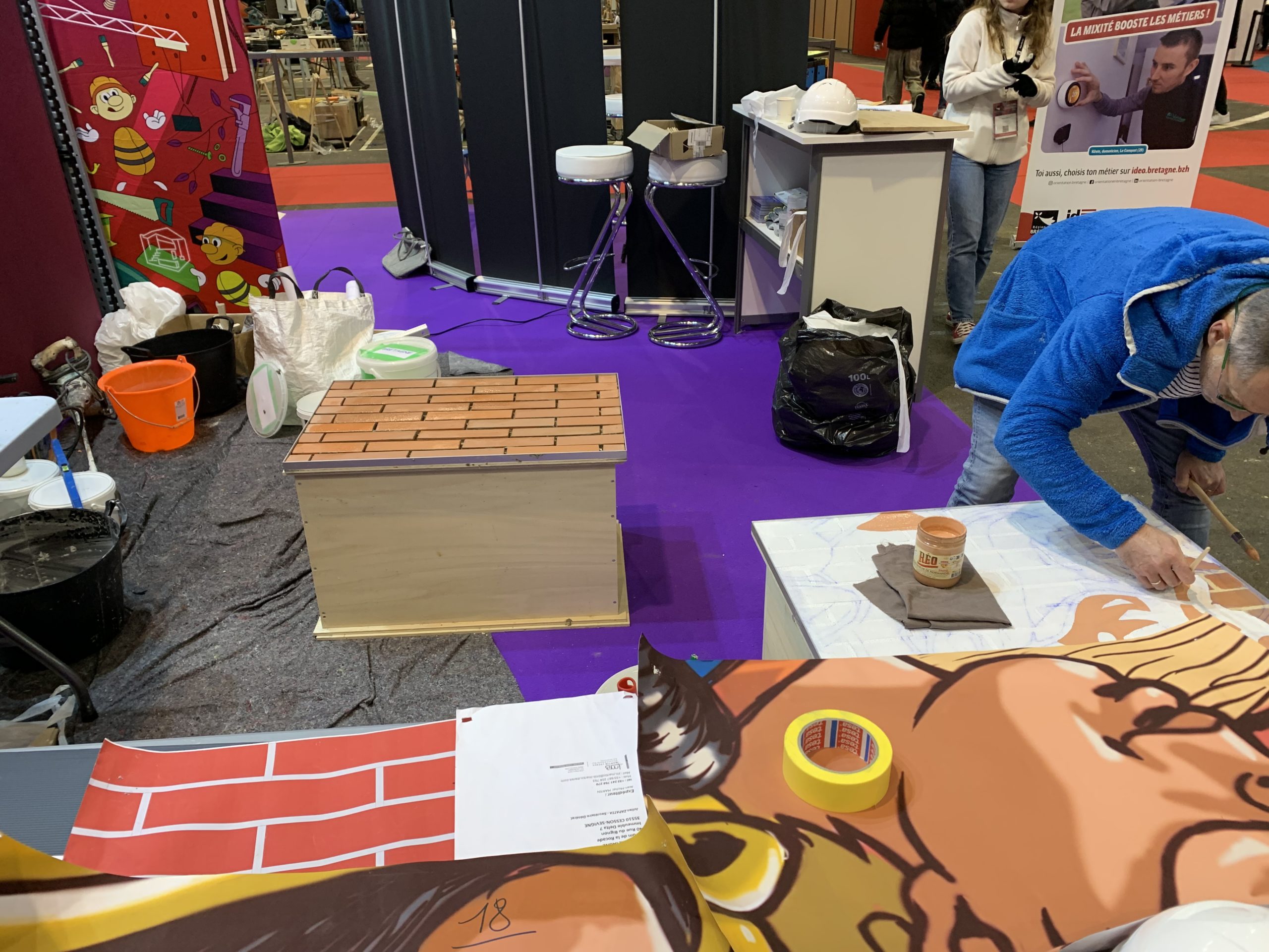 Les animations portées par la CAPEB ont attiré de nombreux jeunes et certain ont pu participer à la personnalisation des cubes. Une belle avancée, puisqu’aujourd’hui Virginie et Nicolas Chevallier ont commencé le graffiti… un beau travail de précision !